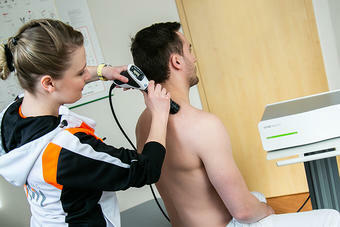 Der Therapeut führt mit Ihnen eine ausführliche Anamnese durch und lokalisiert die Schmerzzone durch Tastbefund. Anschliessend bespricht er mit Ihnen das Krankheitsbild.